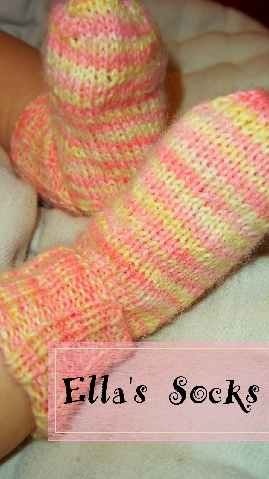 I always have a lot of extra sock yarn in the stash, which is perfect for teeny tiny socks. Socks for babies have to have fairly stiff ribbing around the cuff or the socks won't stay on their feet.